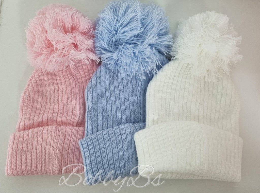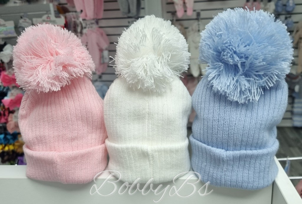 6125 - Plain Ribbed Pompom hat