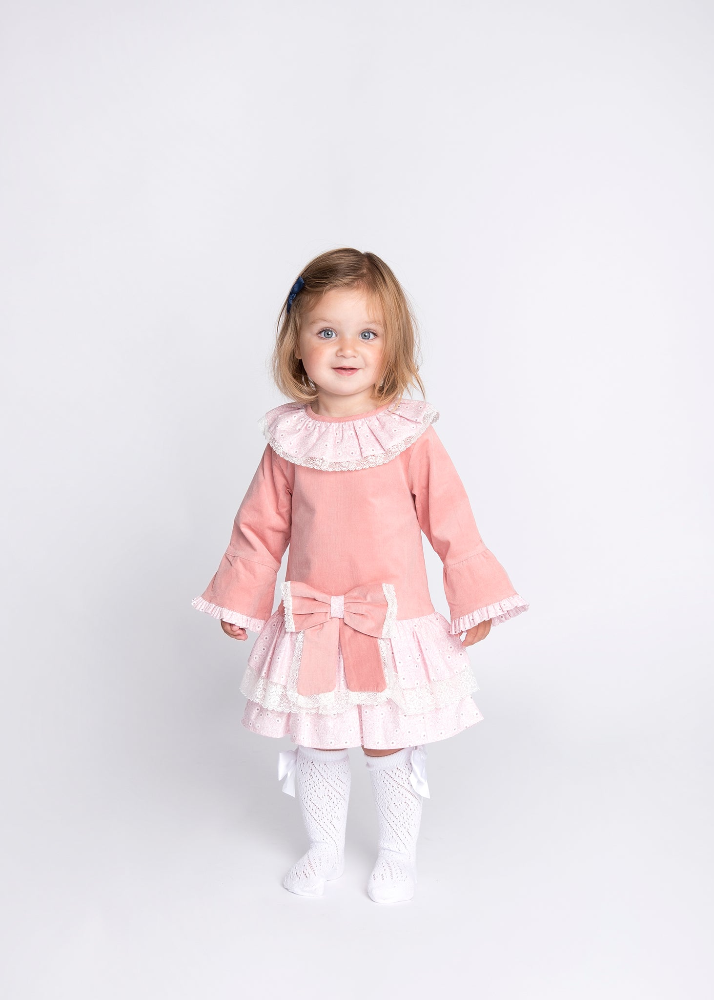 MD1575 ~ Pink Drop waist long sleeve dress.