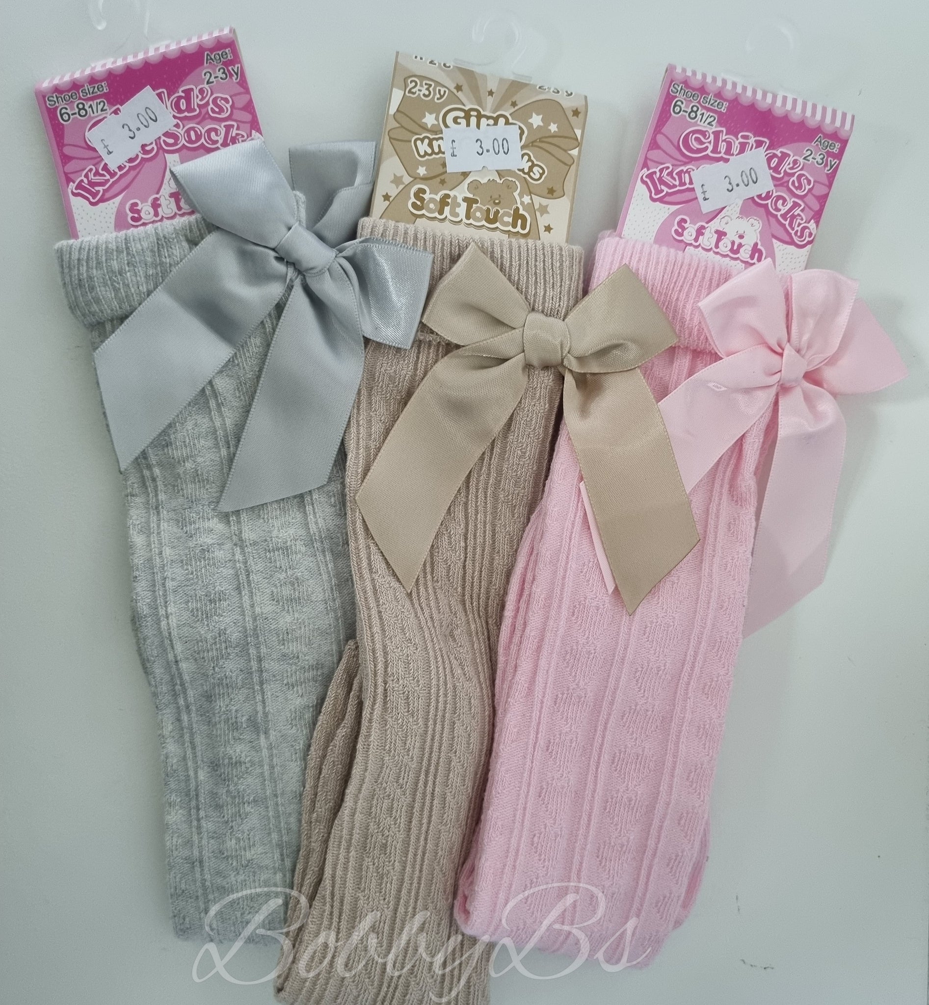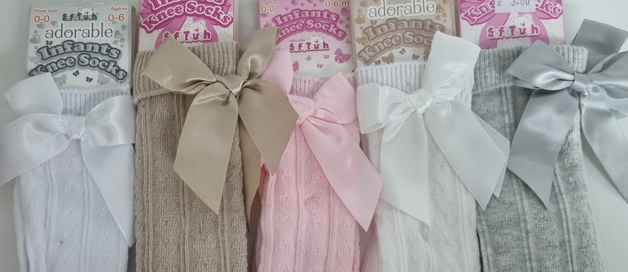 - Knee high bow socks finished with satin bow